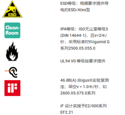 2500系列 - 鏈, 可沿外徑方向快速打開 1. 雙止動器系統(tǒng),適合長架空距離 2. 優(yōu)化的開放系統(tǒng),可在左方向或右方向快速打開夾具 3. 夾具保持力高 4. 側向使用的滑動面 5. 經測試和驗證可牢固固定的安裝架 6. 去應力元件可集成到安裝架中 7. 2400和2450系列可沿內徑折疊打開 8.{N10}. 系列{N11}半拖管可在內徑的兩側折疊打開 9.{N12}. 封閉拖管系列{N13} 可沿內徑折疊打開 10. 多用性,模塊化的內部分隔 11. 優(yōu)化針腳,便于裝配 12. 還有ESD型 13. 去應力分隔片——集成去應力齒的分隔片 E 2500系列有ESD 產品系列 E 2500 ESD系列